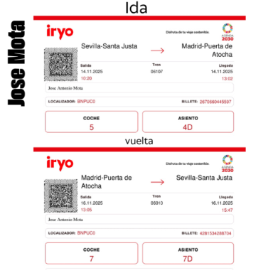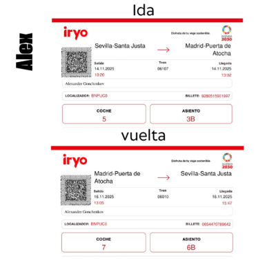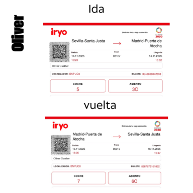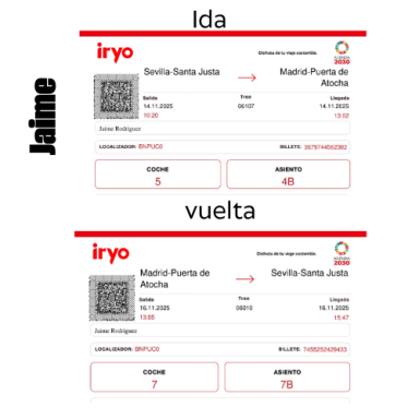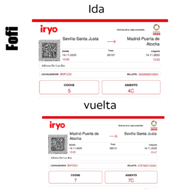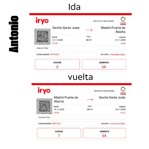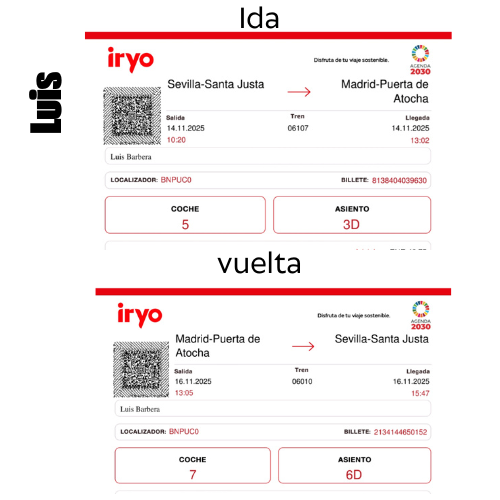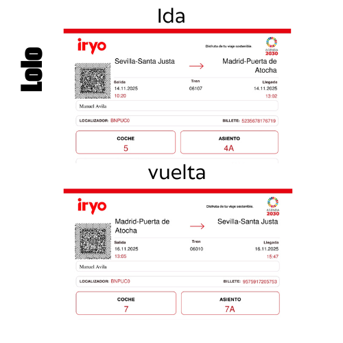 - Tren ida/vuelta Sevilla - Madrid- Sevilla