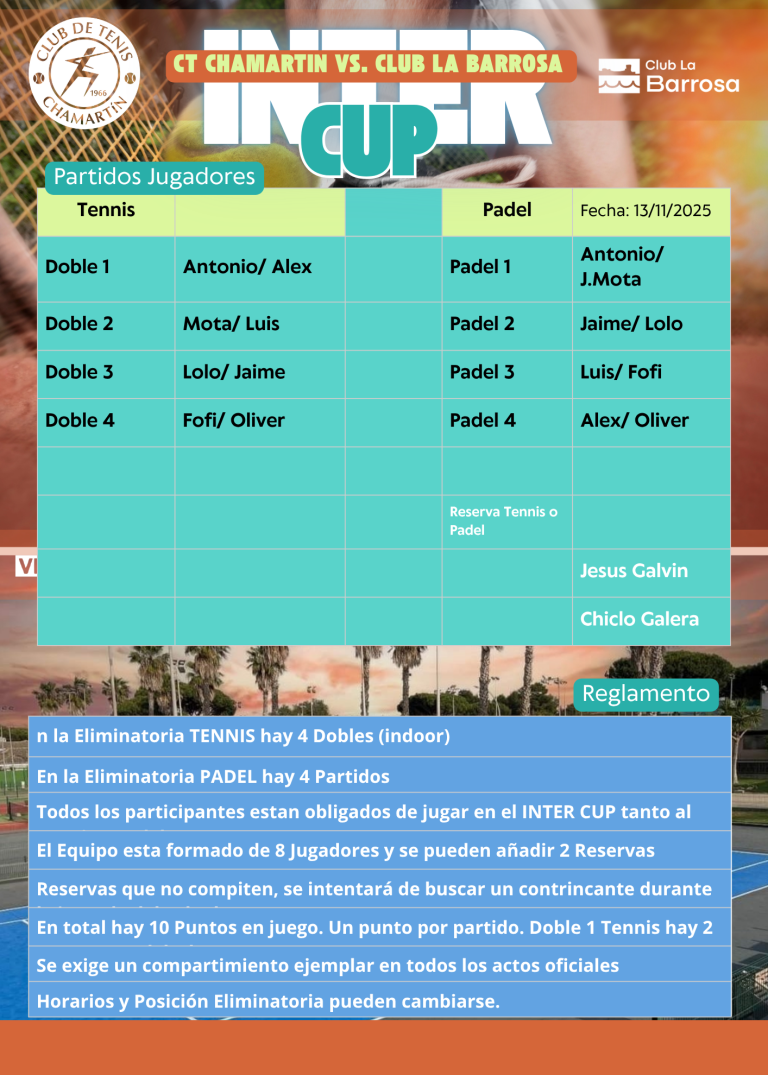 14.35h TENIS 4 Partidos Doble (Equipos anunciamos mañana)